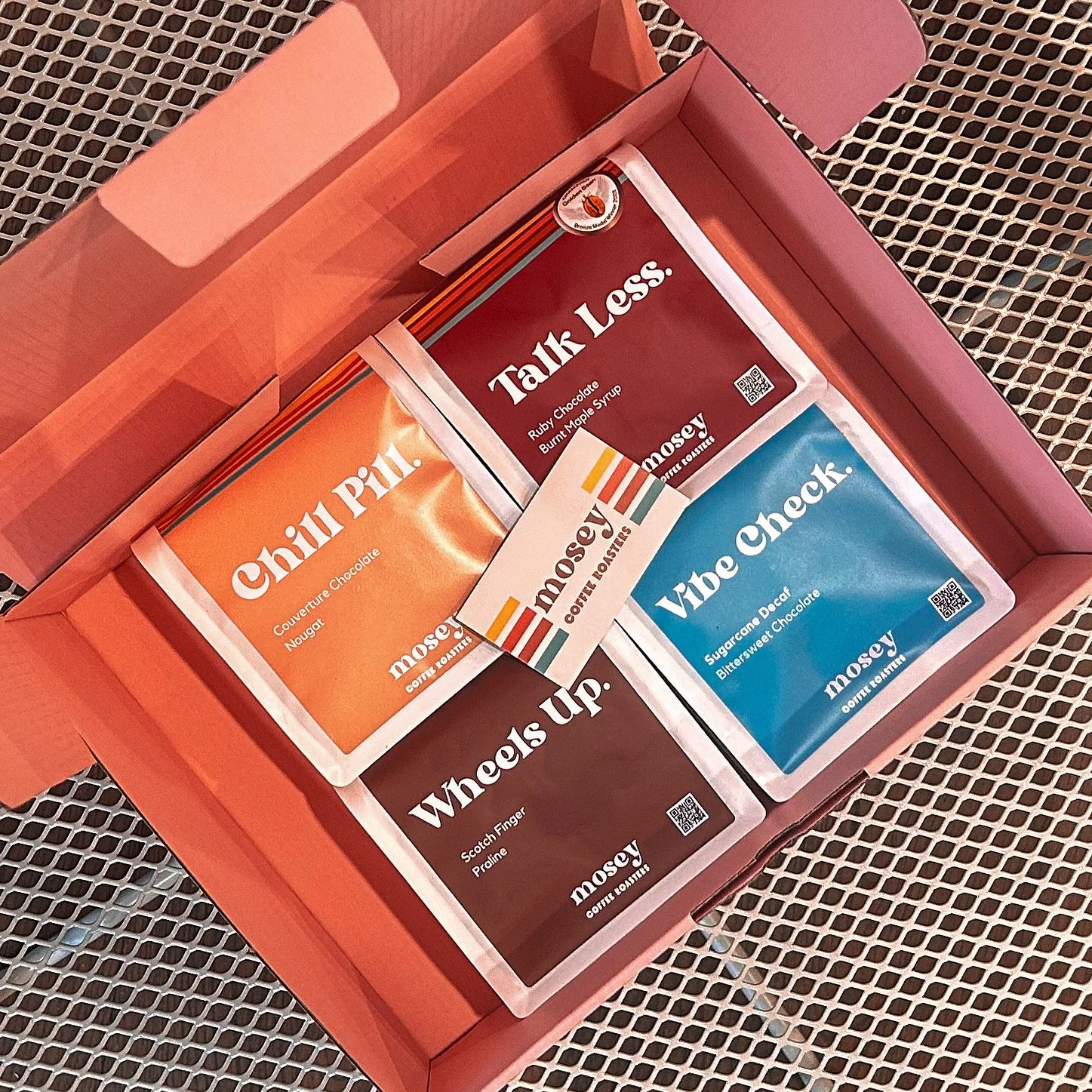 If you have any questions or need assistance finding something; feel free to contact hello@moseycoffee.com